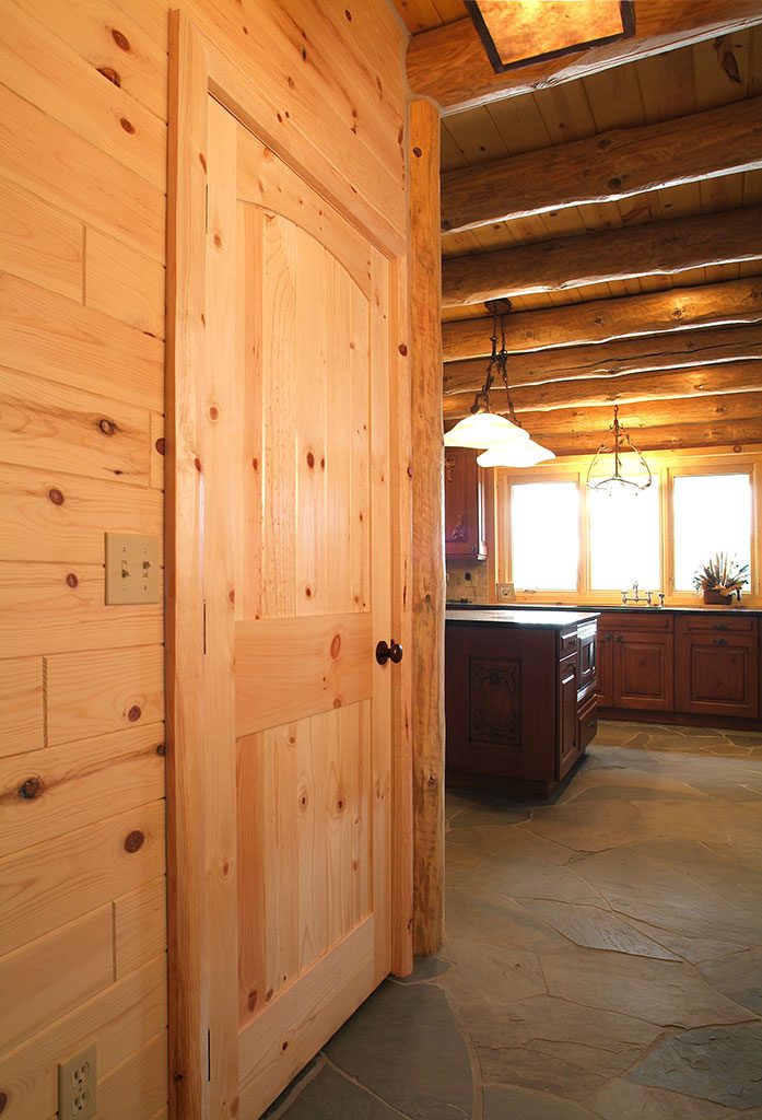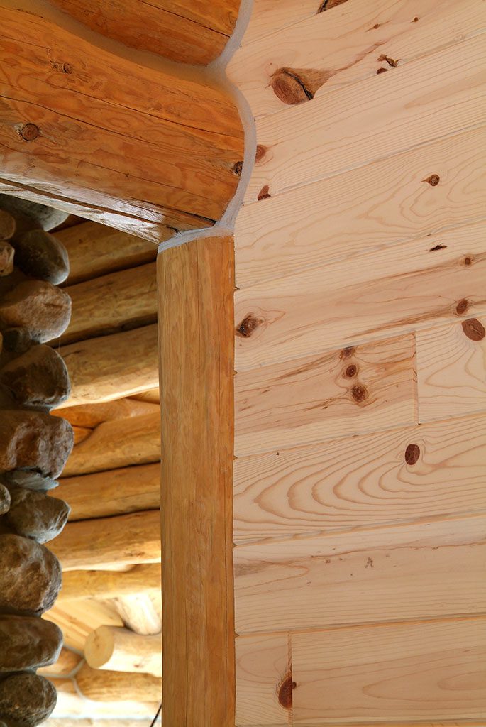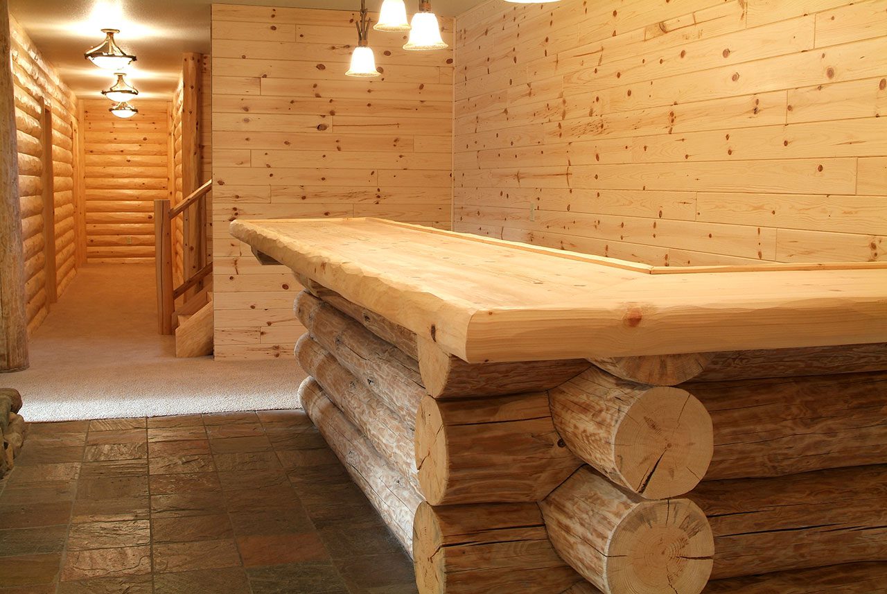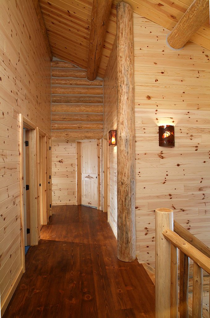 The authenticity of a full-log home shouldn’t be limited to the exterior structure. A variety of WoodHaven’s interior products keep consistency alive in this Rose City, Michigan home. Our 3×8 hewn half-log siding, 4×4 “D” trim, 6-inch diameter inside corners and 1×6 knotty-pine paneling are the perfect complement to the full-log construction. The contractor, Page Construction, used our products in the hallways, stairwells, bedrooms, bathrooms and walk-out basement. Several of the rooms and hallways feature the half-hewn log siding, to replicate the full-log look – a great option when the use of full logs is not feasible. The knotty-pine paneling not only looks beautiful, it’s also versatile, being used in everything from ceilings to wainscoting. All of our products work together to complement the beauty of this full-log home. It’s spectacular, if we do say so ourselves!
